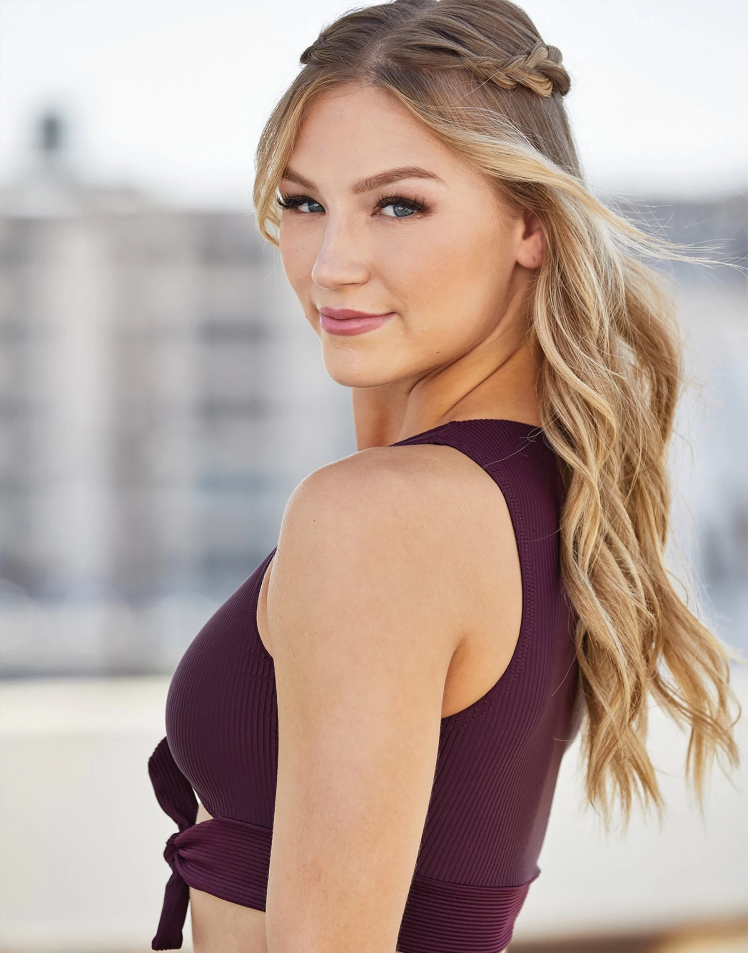 The Audrey Wrap Top is perfect to wear as a crop or activewear. It’s constructed of shiny rib fabric and fully lined at the front. It also features a high scoop neckline and a knot tie detail at center front. This top will make heads turn whether you’re at a convention or in dance class!