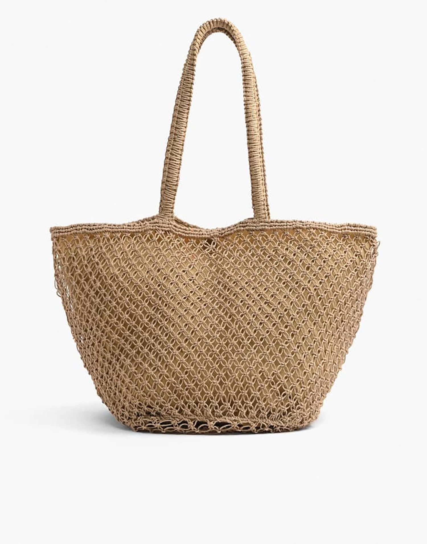 Introducing the perfect beach bag for your summer getaways! This handwoven macrame jute fabric is intricately textured and handbeaded with the phrase ‘beach please’ in the front. The bag is designed with double shoulder straps and a metallic button closure, ensuring all your beach essentials stay secure. The interior is fully lined with a zip pocket inside to store all your small items. In a neutral jute fabric with the vibrant handbeaded front, it will make all your outfits come alive.