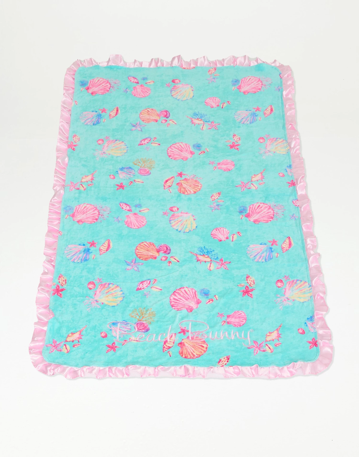 Stay on trend with our blue ditsy shell Beach Bunny towel. Â