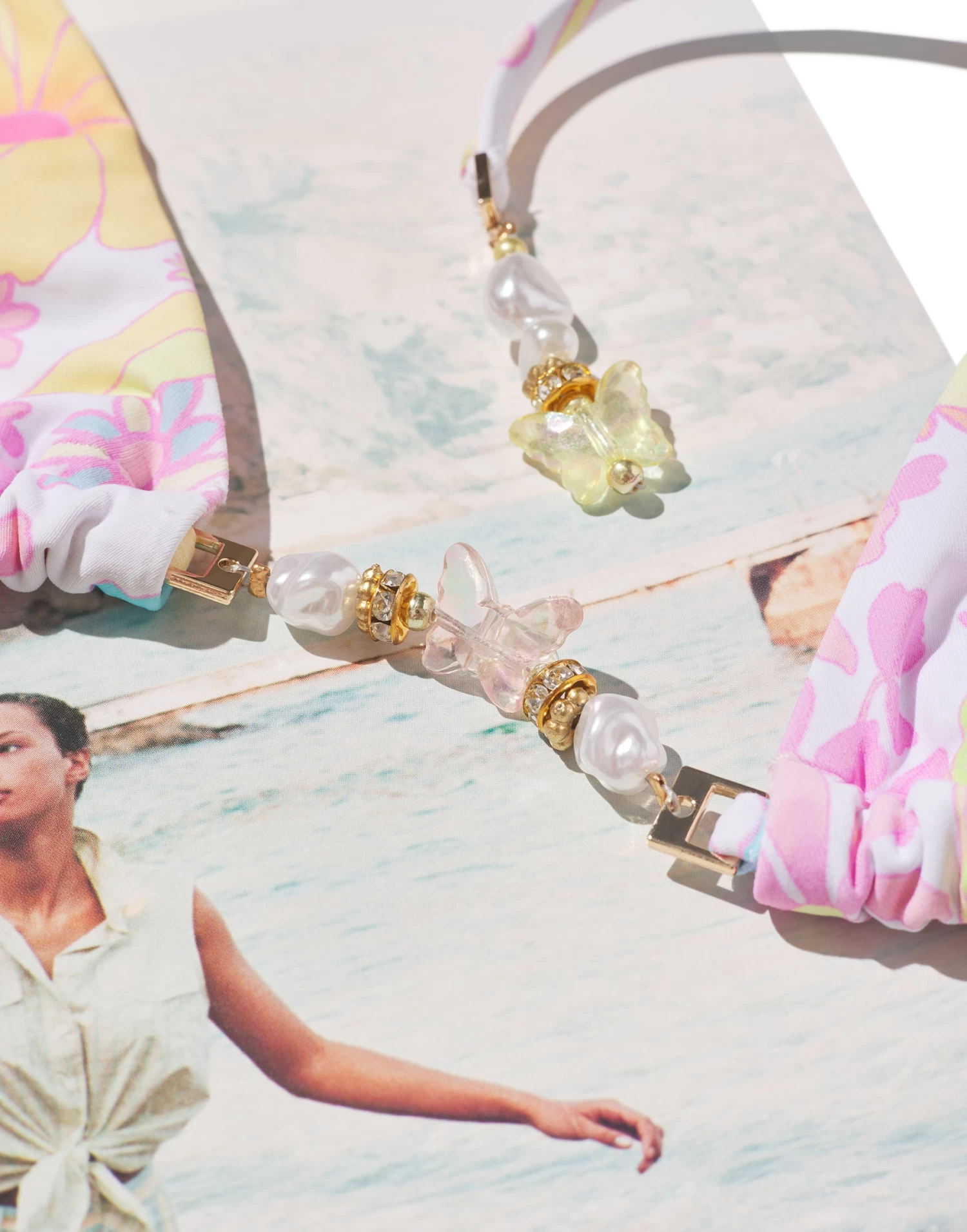 The Dee Triangle Top is great because it can be worn multiple ways! As a normal triangle top with a high apex detail, or as a upside down halter top with an adjustable cinch-front detail.