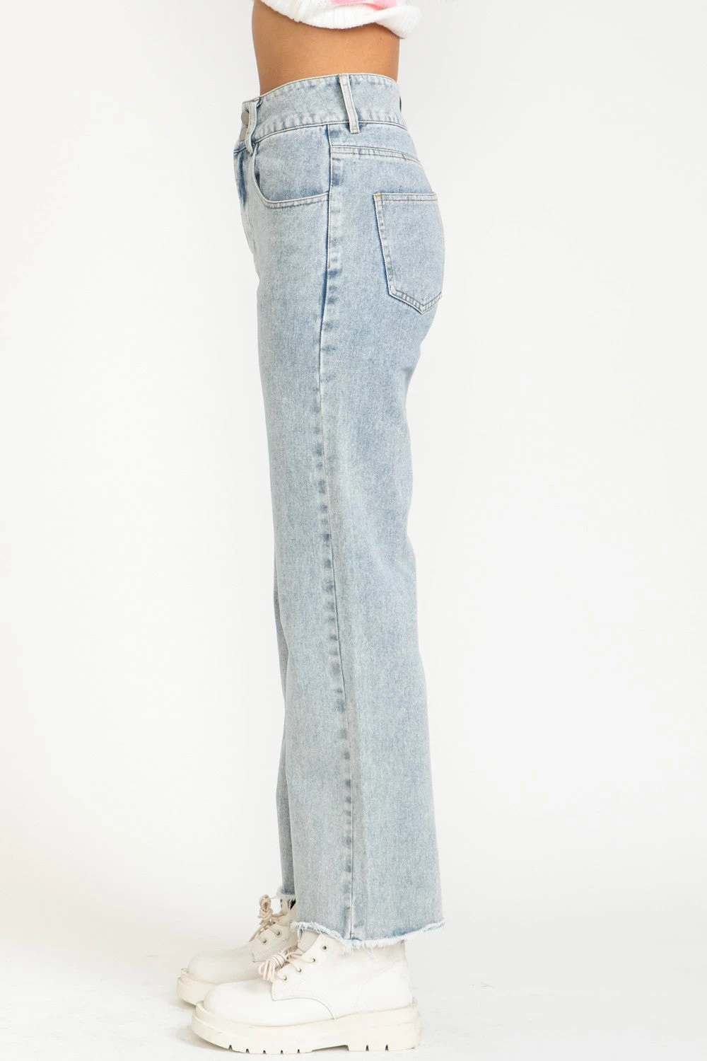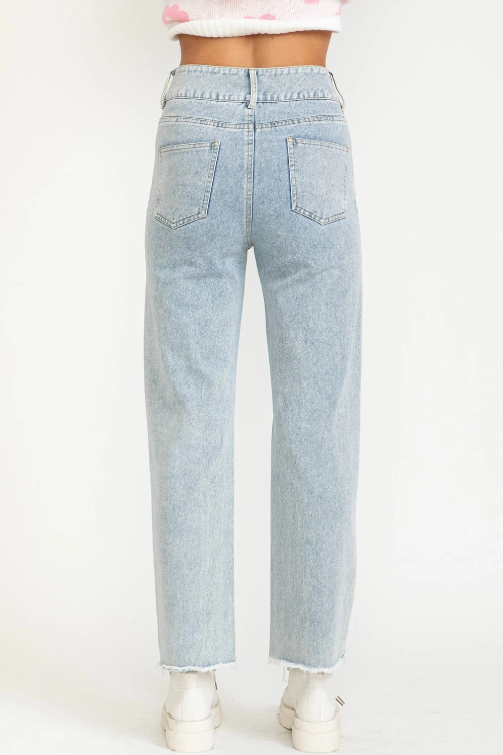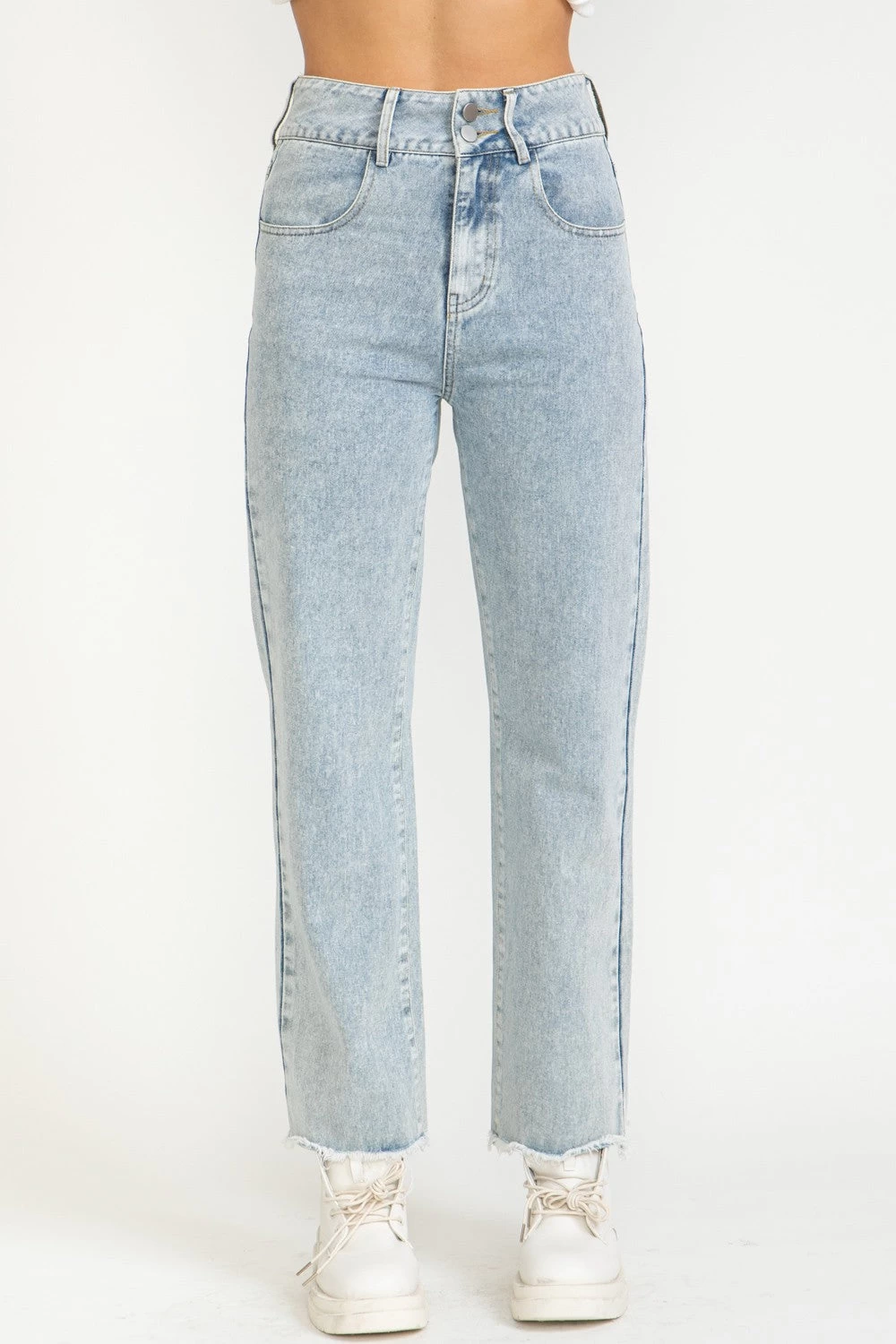 The Eve Denim Pant is a high waisted straight leg jean.Â