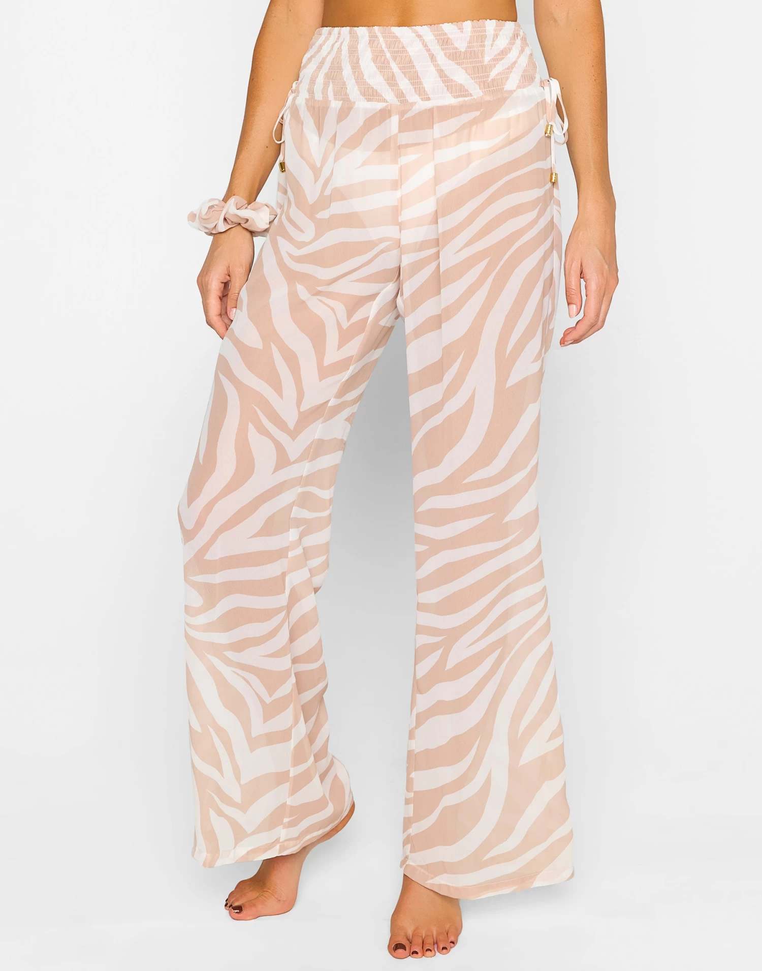 The Evelyn Pant is the perfect grab and go coverup! It features a smocked waistband with adjustable ties on each side.