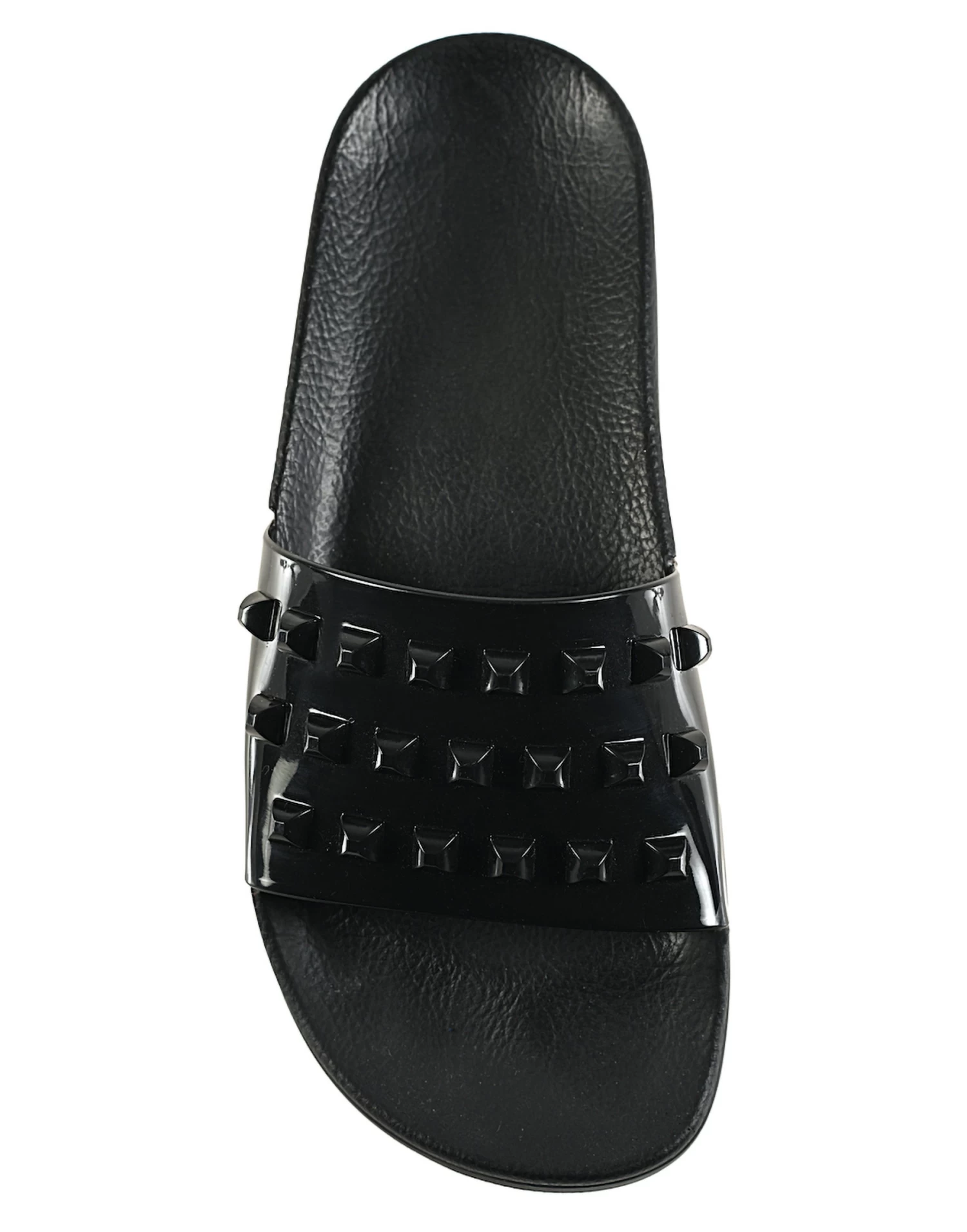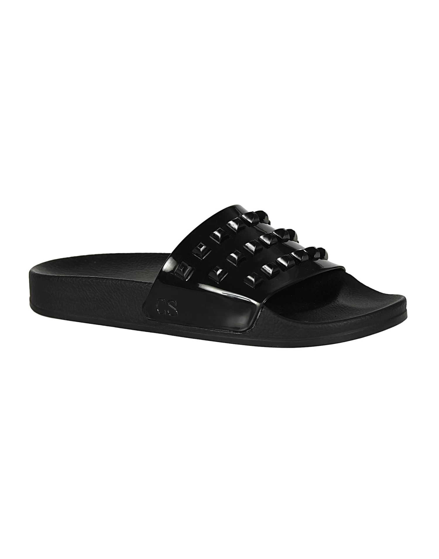 Looking for a new sandal? The Franco sandal is a slide style with a studded band and black molded footbed.Â