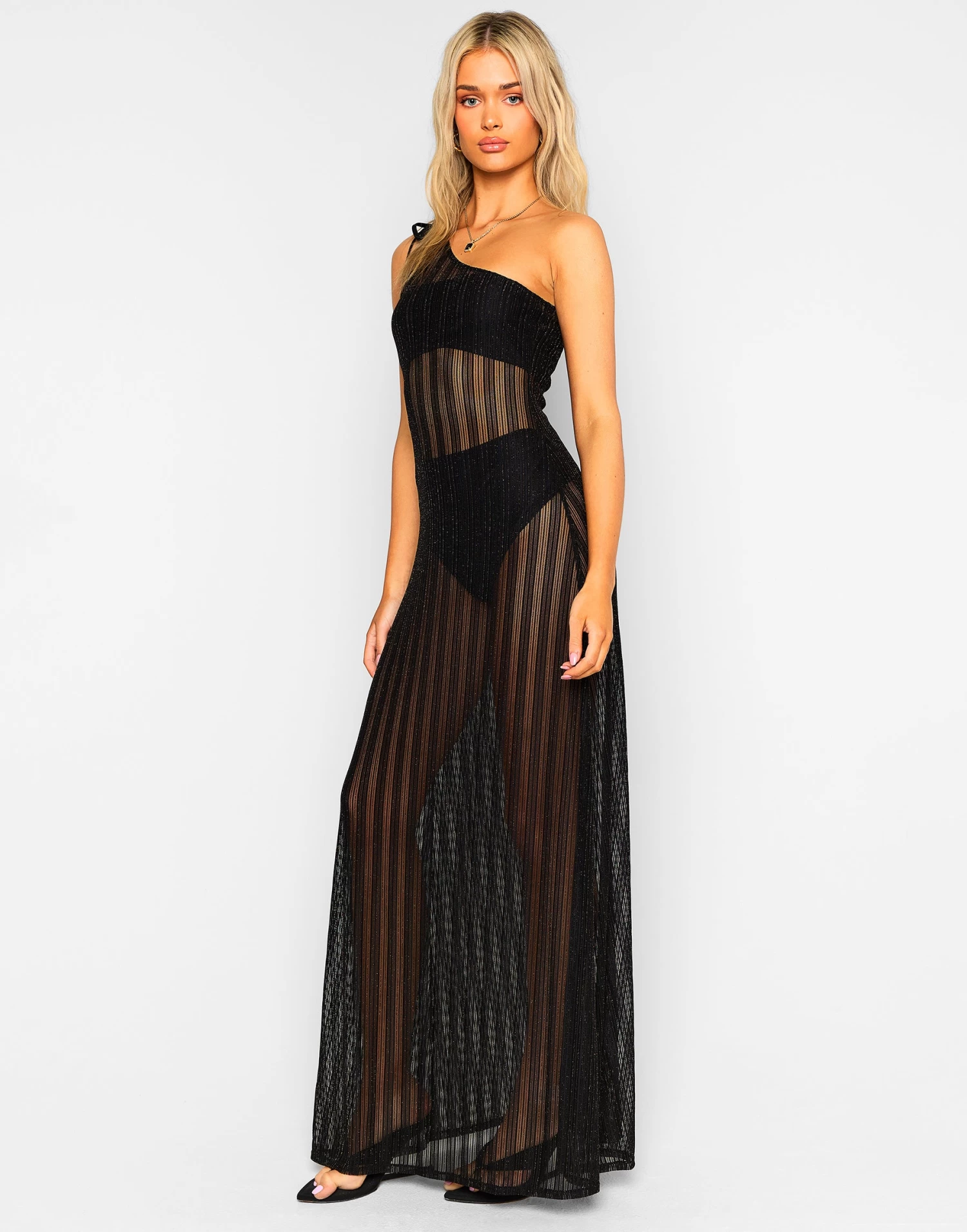 The Grace Maxi Dress will have you feeling sexy! It’s sheer with a bandeau top and high waist bottom underneath.Â