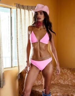 The Gunpowder & Lace Skimpy Bottom features a gorgeous delicate lace, strappy details, and gold hammered rings at hips and center back.