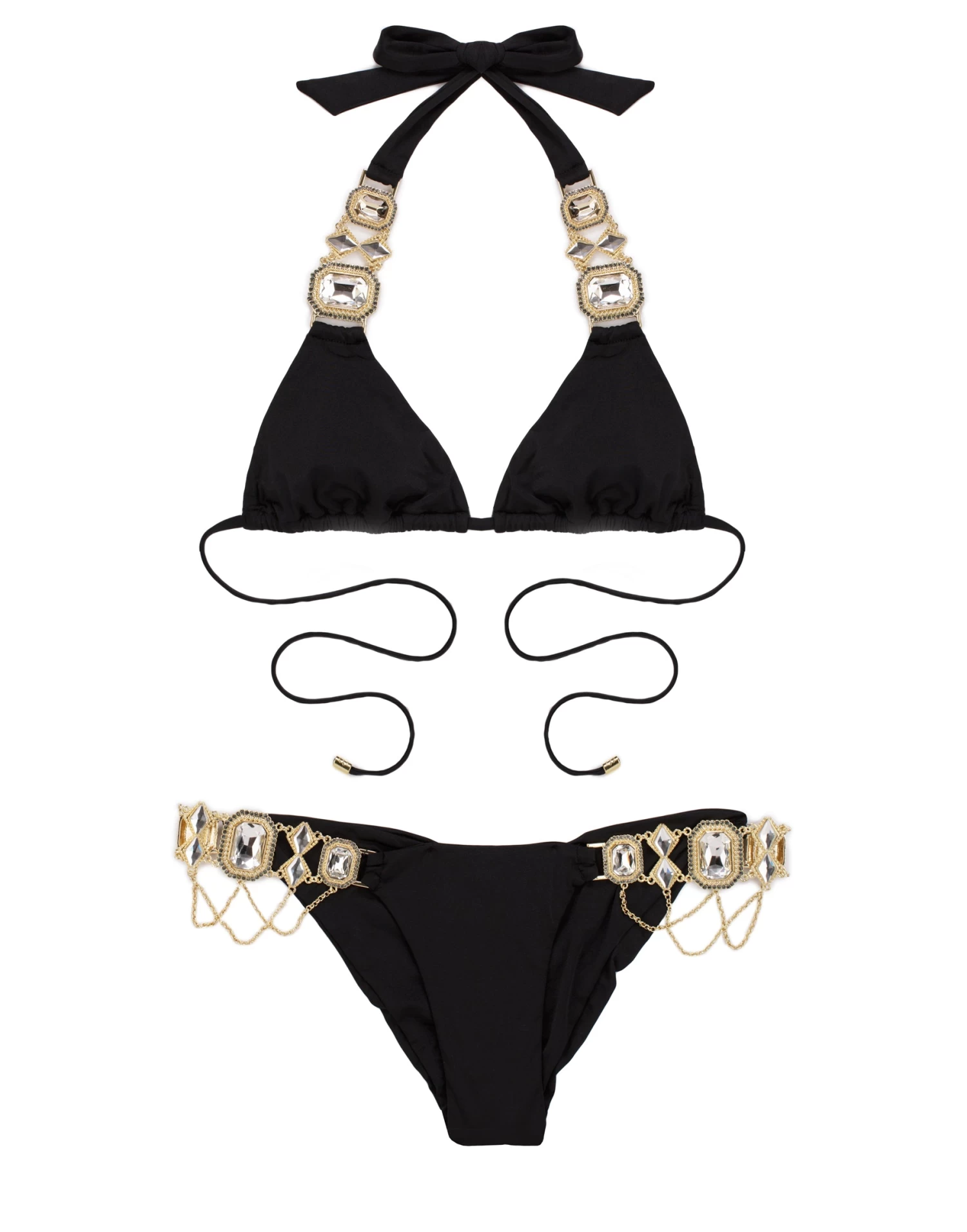 The Jazmin bikini is a Beach Bunny classic that features extravagant rhinestone embellished hardware. Great for pool parties!Â