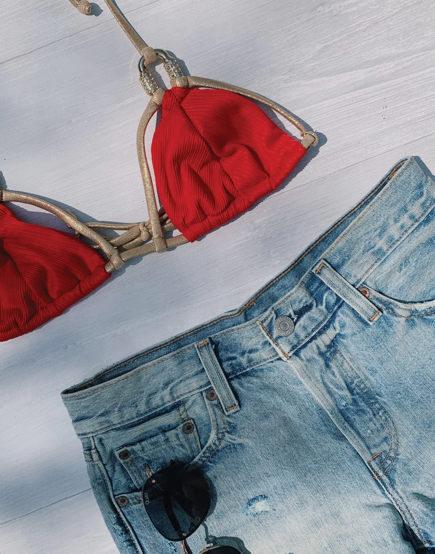 The Madagascar Glam bikini is a Beach Bunny classic. This triangle top has rhinestone embellished hardware and strappy details. Bound to be a go-to for your next Vegas trip!