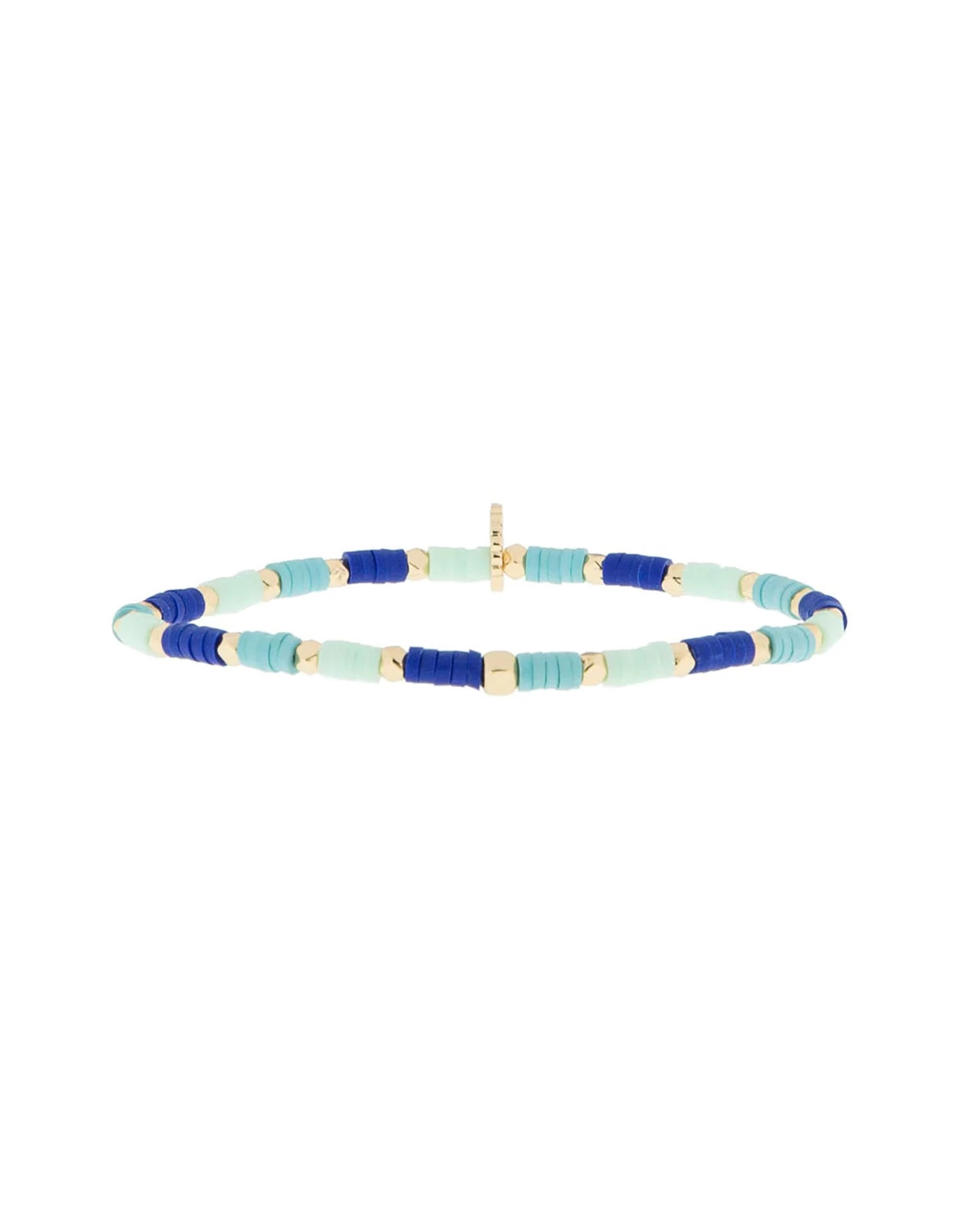 Stretch bracelet designed with mini heishi beads and metal spaced beads.