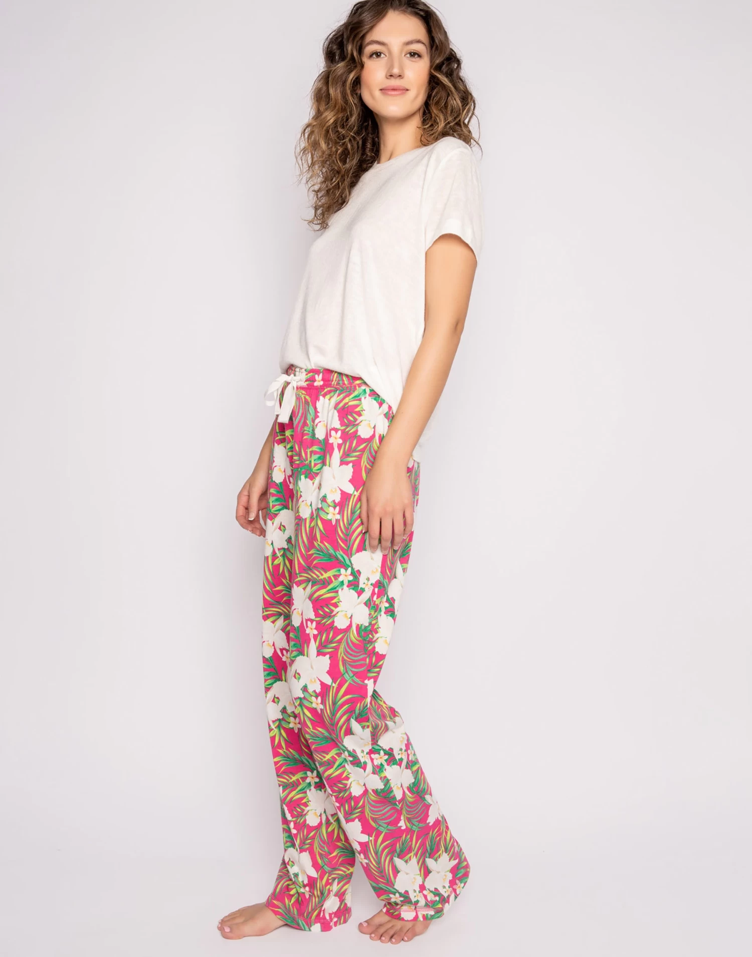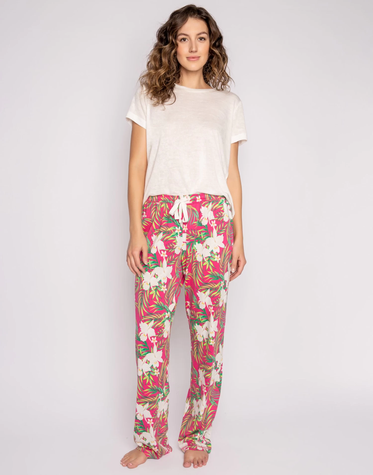 Follow the flowers to your best beauty rest in this vibrant floral printed cotton-blend pj pant. One of the most breathable fabrics, this relaxed pajama straight leg pant features an easy tie waist.