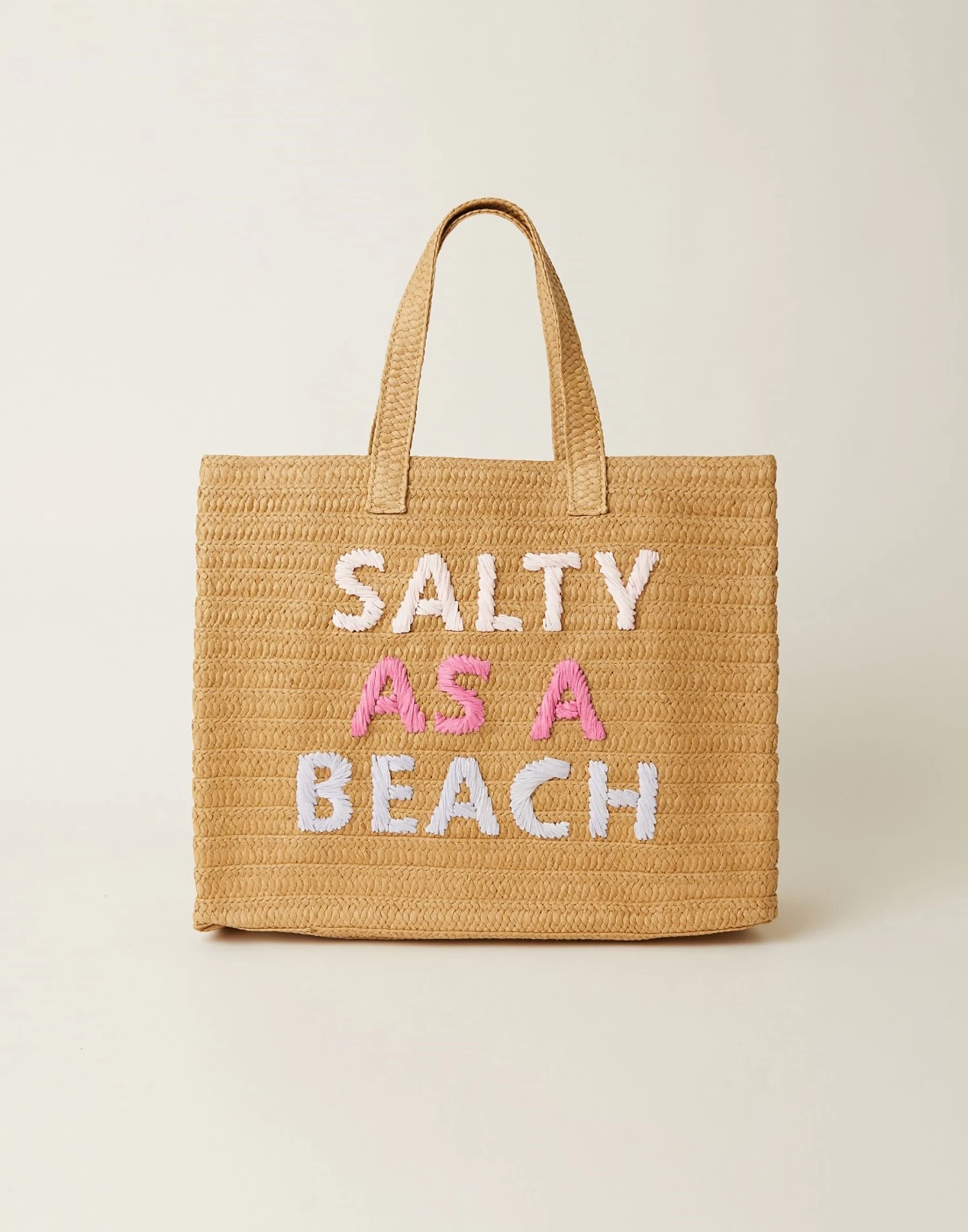 One of the most popular bags, the Salty As a Beach Tote is the ideal beach bag. This roomy bag can hold your towel, sunscreen, and anything else you may need for a day in the sun.Â