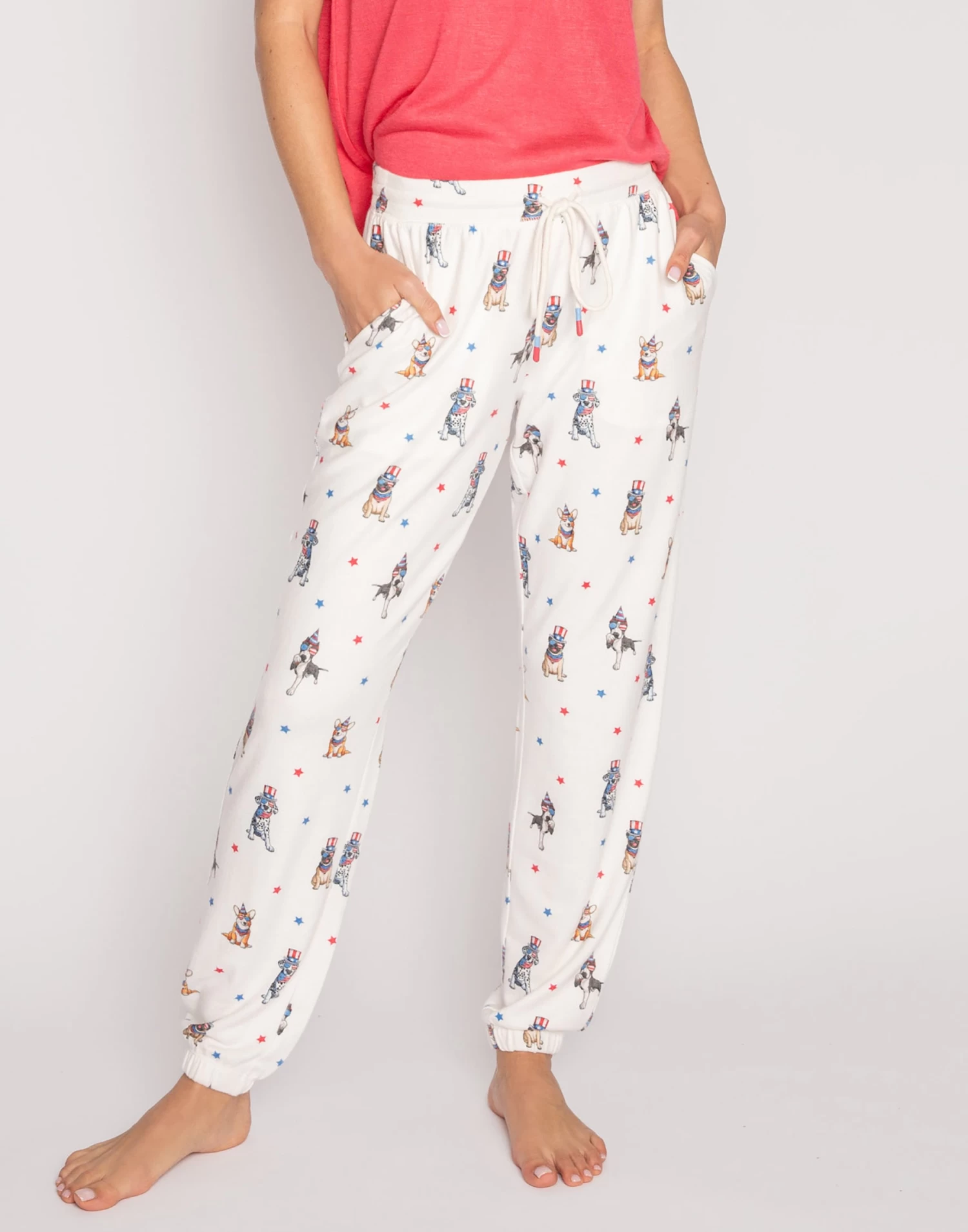 Who let the dogs out? We did! Have a dog-pajama-party in these fun jammie pants, in the softest brushed peachy.