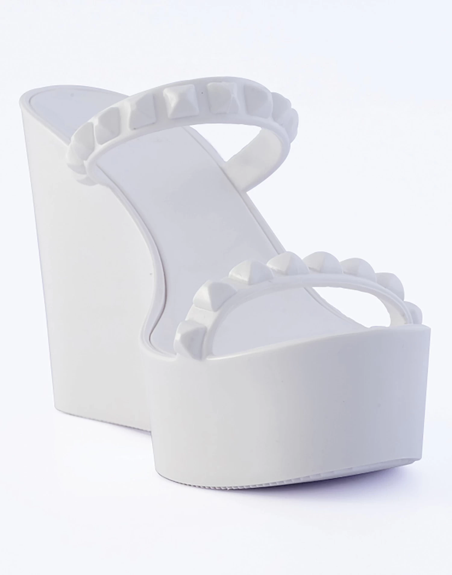 This jelly shoe is chic. It’s eco. It’s eco-chic! This platform wedge is made of our high-quality jelly with studded straps, cushioned inner sole, and well-defined ridges on the outsole. They are water resistant and weatherproof.