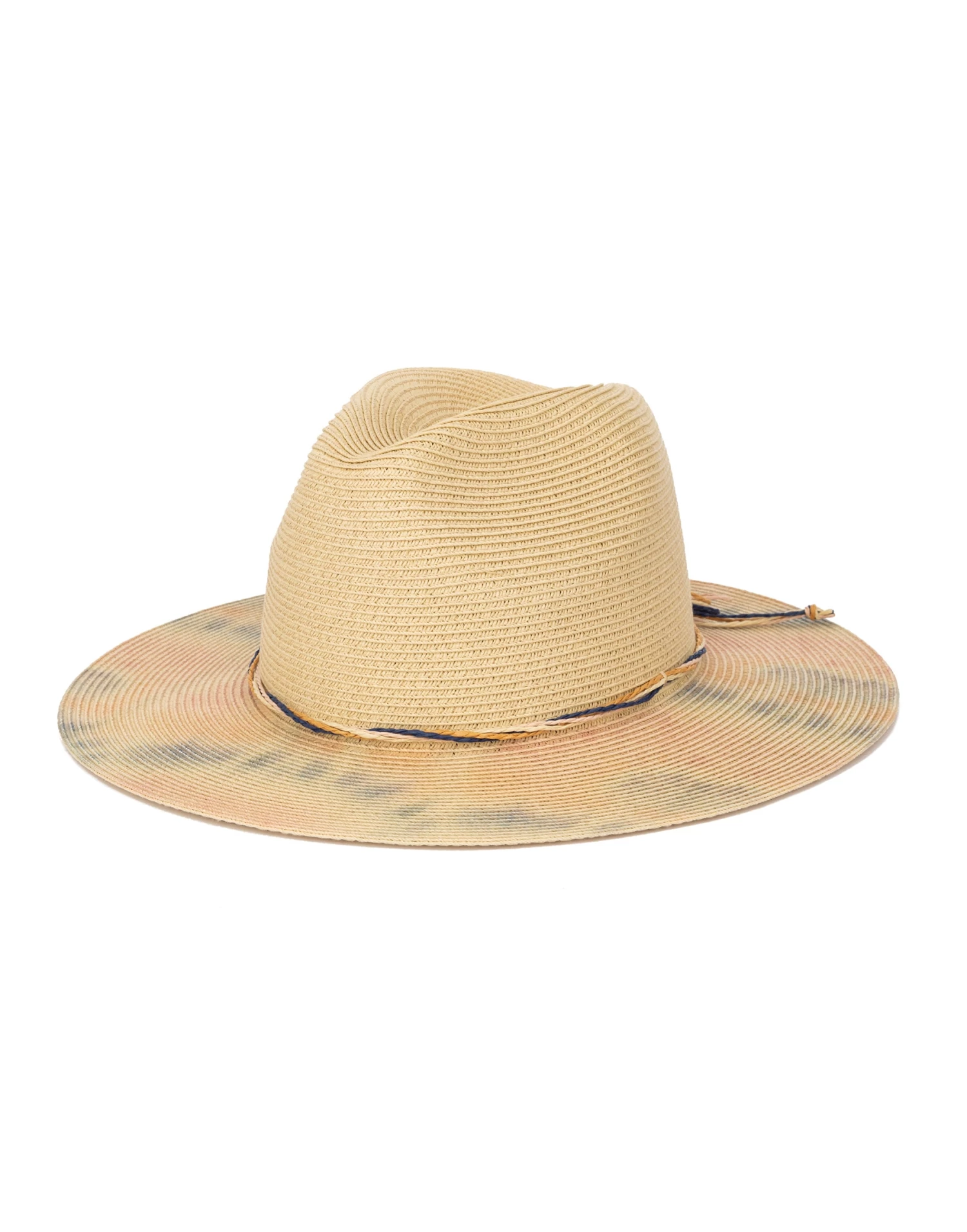 The Wild Child Fedora features a tie dye brim with a multi strand band.Â